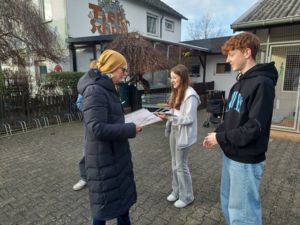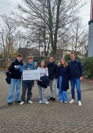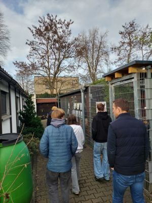 Im November gingen die letzten Spenden für den Sozialtag auf dem Konto des Fördervereins ein. Gestern hatten wir dann endlich die Möglichkeit, dem Tierheim einen Scheck in Höhe von 2.568 € zu überreichen. Mit dabei waren neben Herrn Kremer, dem stellvertretenden Schuleiter, noch Frau Kettler und Frau Prohaska als Initiatorinnen und Organisatorinnen des Sozialtages und als Vertreterinnen für das Team „Sozialtag“ und 3 Vertreter:innen der Schülerschaft, Kim, Emil und Max aus der Stufe 10. Gerührt und voller Dankbarkeit nahm Frau Berben, Vorstandsvorsitzende des Tierheims, den Scheck entgegen und führte die kleine Gruppe über das Gelände. „Es soll eine neue Küche für das Katzenhaus gebaut und eingerichtet werden! Dafür können wir die Spende sehr gut gebrauchen!“ Zum Schluss gab es noch für alle ein kleines Geschenk, einen Kalender des Tierheims. Wir freuen uns auf eine weitere Zusammenarbeit mit dem Tierheim auch im nächsten Jahr.